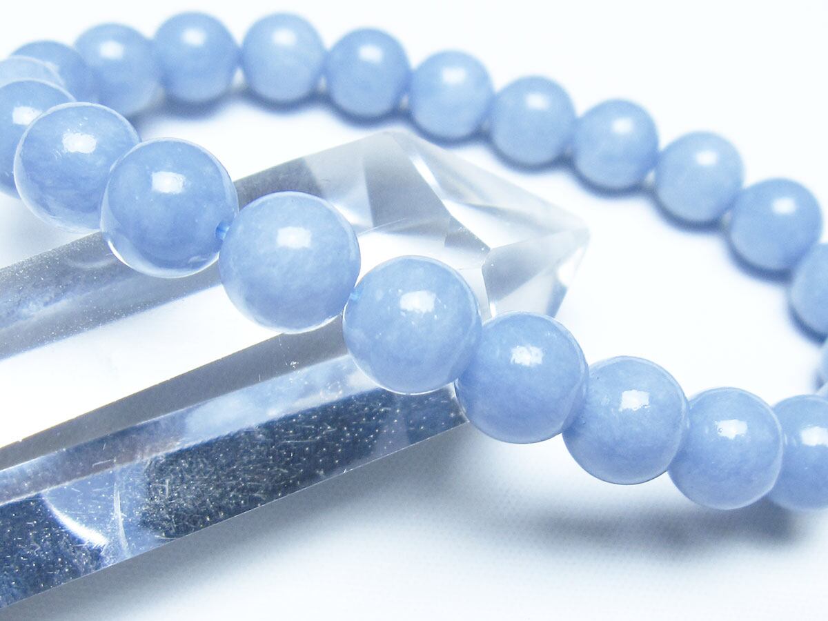 エンジェライトは、ストロンチウムを含むアンハイドライト(硬石膏)の一種で、セレスタイトに近い石であり、硬度も3.5と柔らかい為取り扱いには注意が必要です。名前の由来は、美しい空色が天使を彷彿とされることから付けられたと言われています。「天使の石」とも称され、包み込むような優しい癒しのエネルギーを持つとされます。