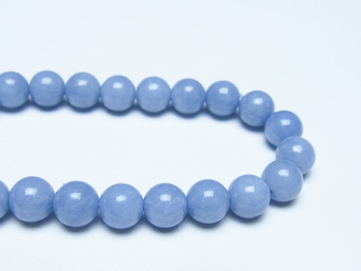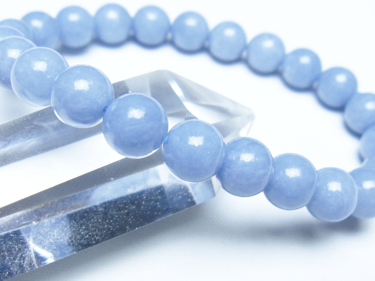 エンジェライトは、ストロンチウムを含むアンハイドライト(硬石膏)の一種で、セレスタイトに近い石であり、硬度も3.5と柔らかい為取り扱いには注意が必要です。名前の由来は、美しい空色が天使を彷彿とされることから付けられたと言われています。「天使の石」とも称され、包み込むような優しい癒しのエネルギーを持つとされます。