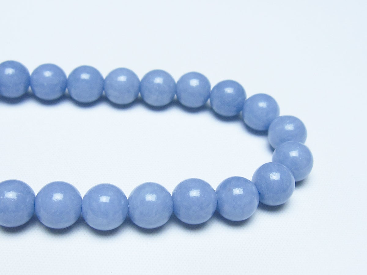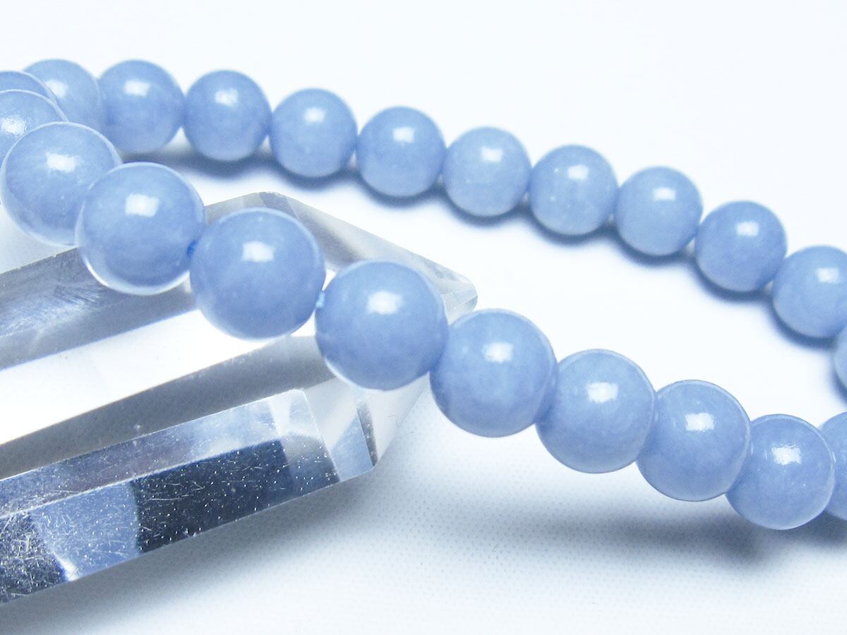エンジェライトは、ストロンチウムを含むアンハイドライト(硬石膏)の一種で、セレスタイトに近い石であり、硬度も3.5と柔らかい為取り扱いには注意が必要です。名前の由来は、美しい空色が天使を彷彿とされることから付けられたと言われています。「天使の石」とも称され、包み込むような優しい癒しのエネルギーを持つとされます。