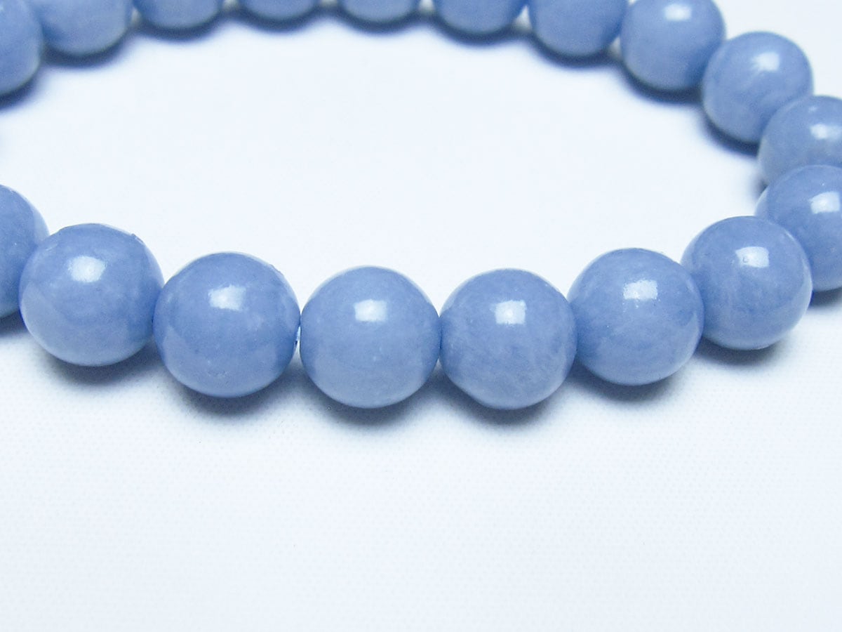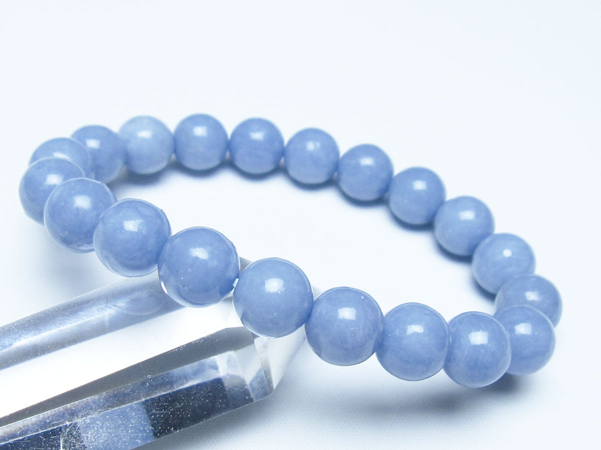 エンジェライトは、ストロンチウムを含むアンハイドライト(硬石膏)の一種で、セレスタイトに近い石であり、硬度も3.5と柔らかい為取り扱いには注意が必要です。名前の由来は、美しい空色が天使を彷彿とされることから付けられたと言われています。「天使の石」とも称され、包み込むような優しい癒しのエネルギーを持つとされます。
