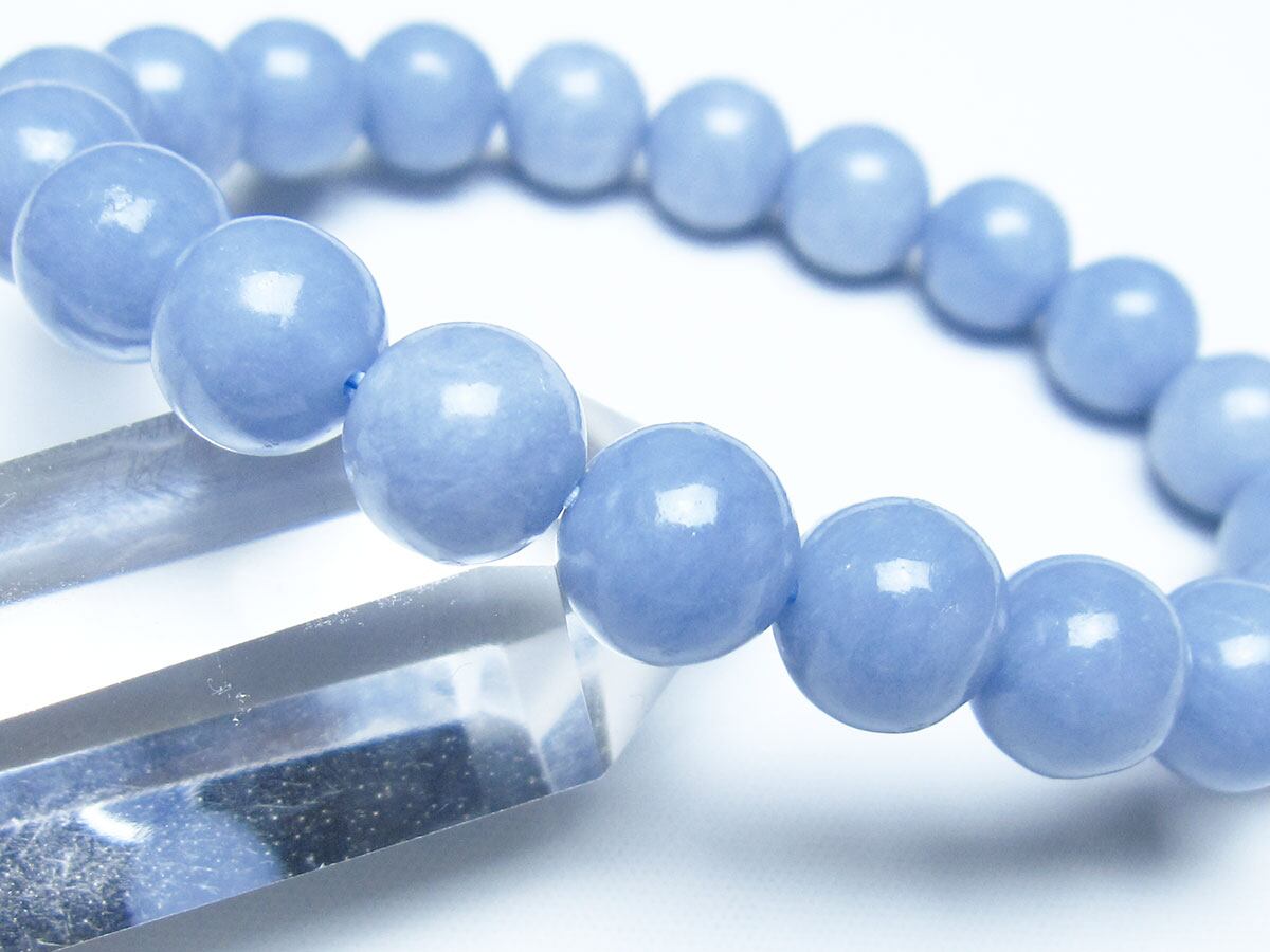 エンジェライトは、ストロンチウムを含むアンハイドライト(硬石膏)の一種で、セレスタイトに近い石であり、硬度も3.5と柔らかい為取り扱いには注意が必要です。名前の由来は、美しい空色が天使を彷彿とされることから付けられたと言われています。「天使の石」とも称され、包み込むような優しい癒しのエネルギーを持つとされます。