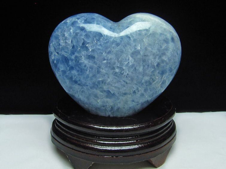 1.1Kg ブルーカルサイト ハート置物 台座付属