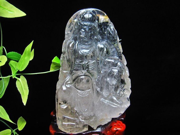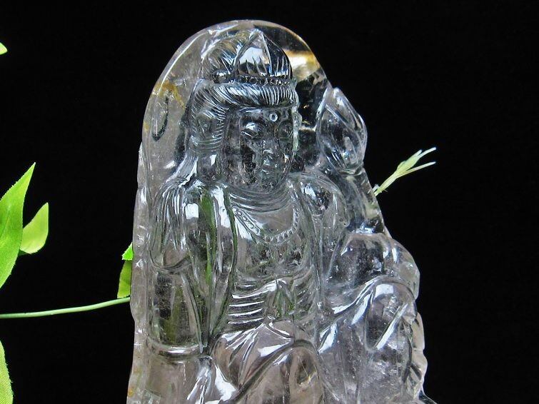1.5Kg クリスタルクォーツ 手彫り観音置物 台座付属