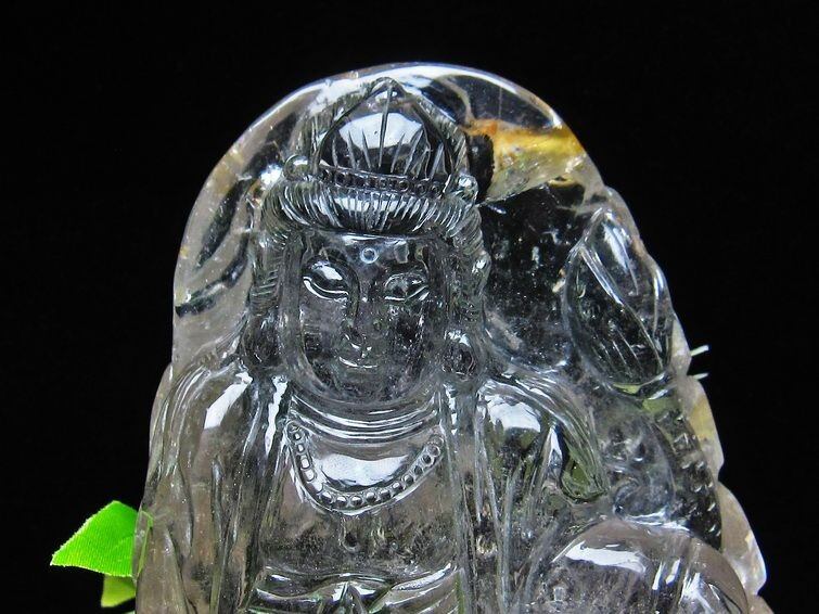 クリスタルクォーツ手彫り観音置物