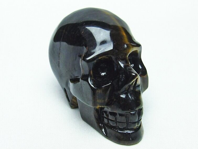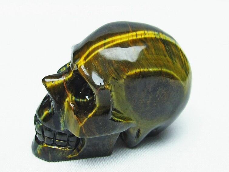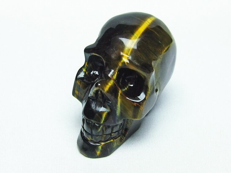 イエロータイガーアイ 手彫り-卓上置物-ドクロ-スカル
