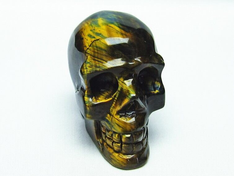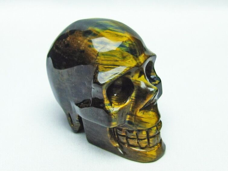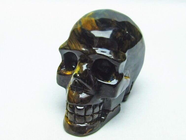 イエロータイガーアイ 手彫り-卓上置物-ドクロ-スカル