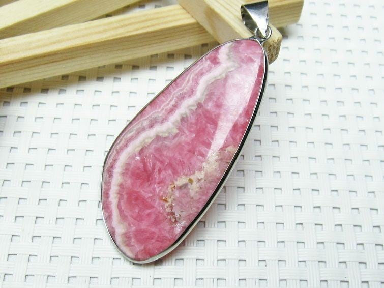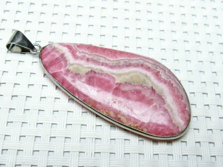 インカローズは、正式名称を「ロードクロサイト」といい、ギリシャ語で「バラ色の石」を意味します。バラの色のように美しい赤みを帯びたピンクの色で、白い縞が入り、石をカットした断面図がバラの花が開くような模様をしており、インカ帝国が栄えた時代アンデス山脈の鉱山より取れたため、名付けられました。