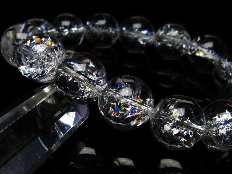 水晶 ブレスレット 虹入り ブレス アイリスクォーツ 16mm