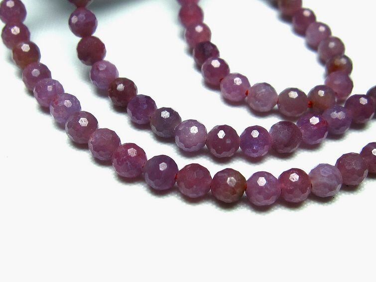 ■商品名 ルビー ネックレス 128面カット ■天然石名 ルビー ■サイズ 粒直径:約4mm ■重量 14.6g ■商品番号 113-288 ルビーネックレス128面カット