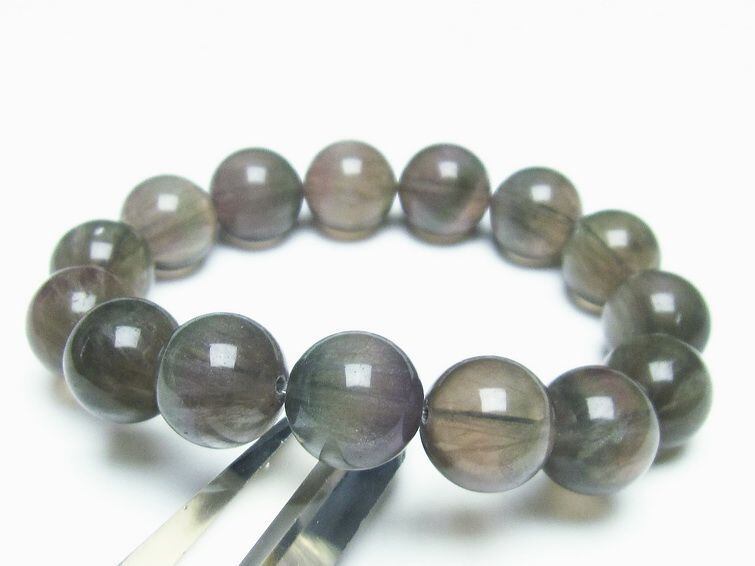 ラビットヘアー フローライト ブレスレット 14mm おまかせ便 111-25043