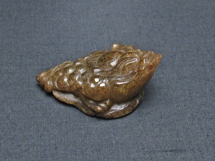金針ルチル 金蟾 置物 手彫り 彫刻品 キンセン ルチルクォーツ 原石