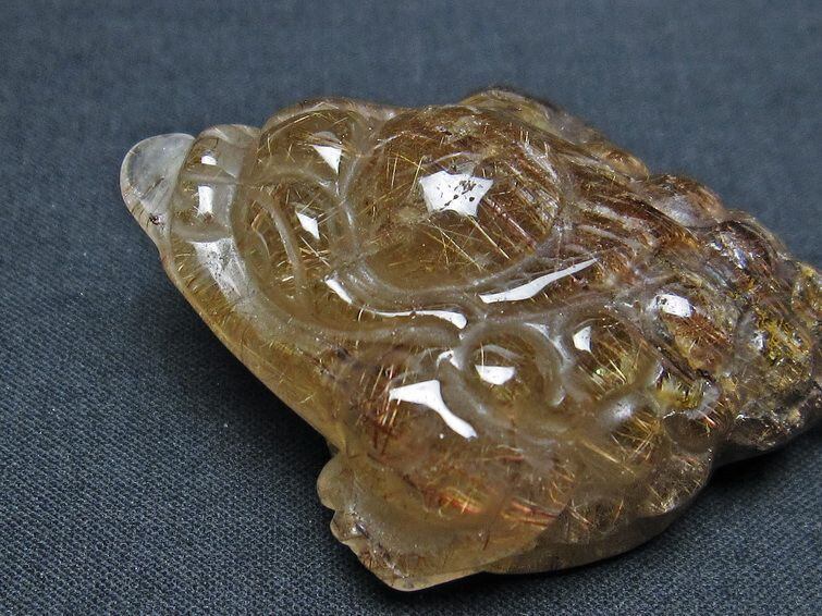 金針ルチル 金蟾 置物 手彫り 彫刻品 キンセン ルチルクォーツ 原石