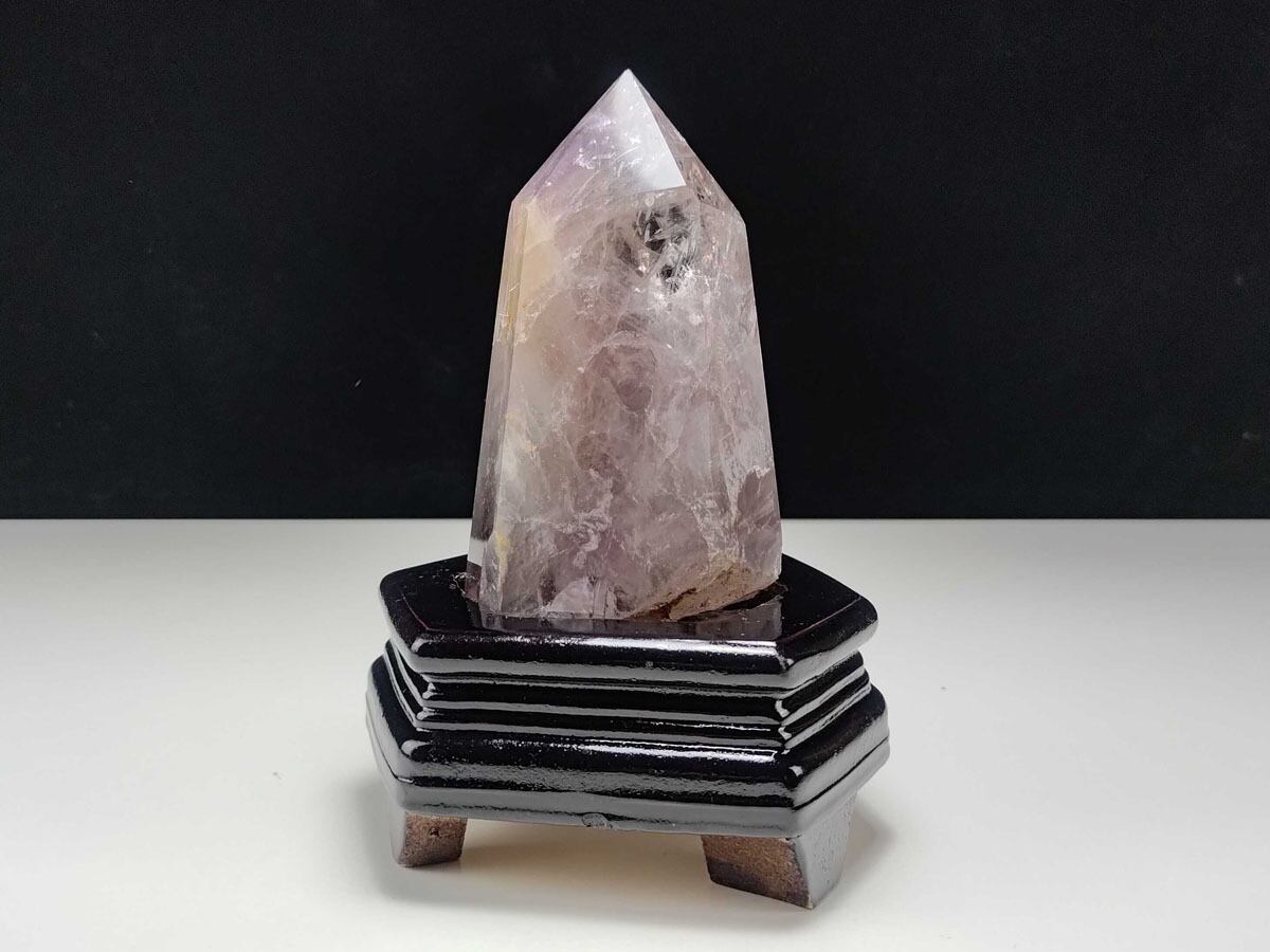 アメジスト 六角柱 アメシスト ポイント 置物 原石 虹入り ファントム 台座付属 一点物 152-2141