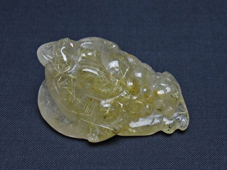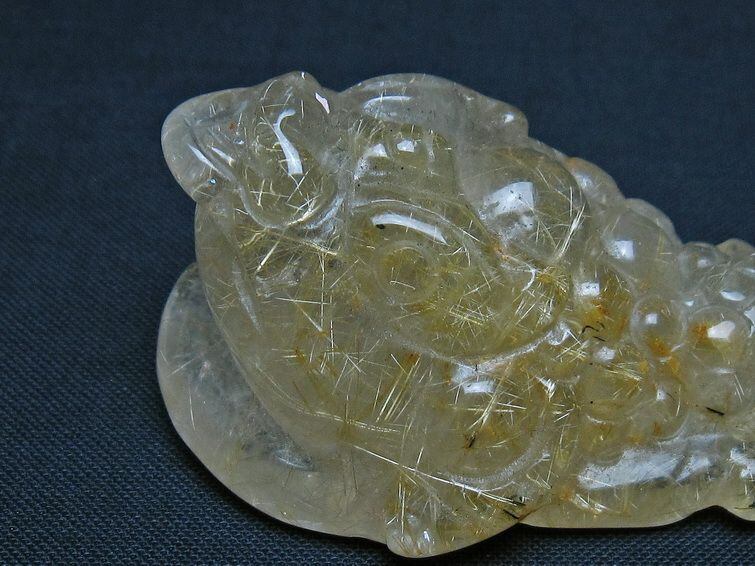 タイチンルチルクォーツ 手彫り 置物 キンセン 金蟾