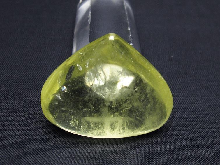この石は、地中深くに結晶したアメジストが、マグマなどによる熱干渉を受けて黄色く変化したり、水晶に放射線が加わって黄色く変化したもので大変に希少性の高いものです。