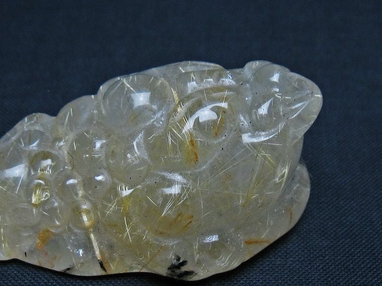 タイチンルチルクォーツ 手彫り 置物 キンセン 金蟾