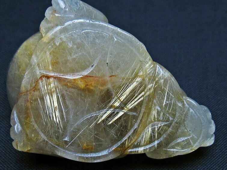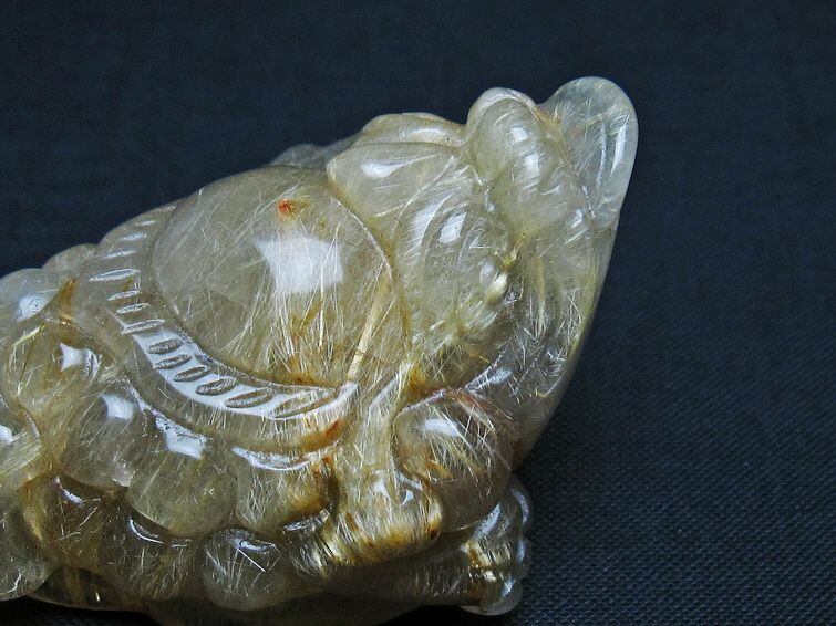 タイチンルチルクォーツ手彫り 置物 キンセン 金蟾